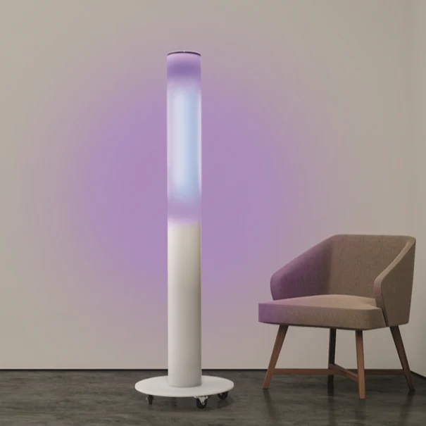 Spectral Blue™ Desinfektionsgeräte emittieren blaues Licht mit mehreren Wellenlängen (kein UV-Licht!), das Raumluft und Oberflächen automatisch und gleichmäßig desinfiziert.